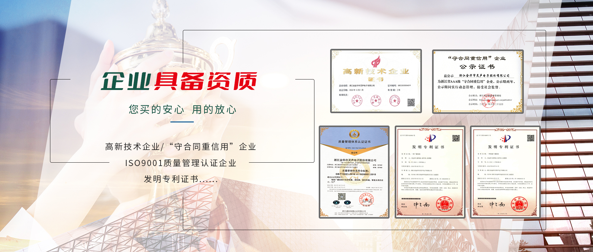 公司榮譽(yù):先后被認(rèn)定為國(guó)家高新技術(shù)企業(yè),浙江省高新技術(shù)企業(yè),浙江省工商業(yè)守合同重信用單位,浙江省科技型中小企業(yè),金華市專利示范企業(yè),金華市誠(chéng)信民營(yíng)企業(yè)等榮譽(yù)。